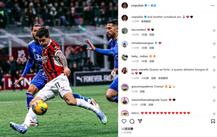 他也在賽后通過社媒曬出自己的進(jìn)球瞬間照,并配文:“那么又是一場逆轉(zhuǎn)??”。普利西奇本賽季已經(jīng)為米蘭38場貢獻(xiàn)15球7助攻。